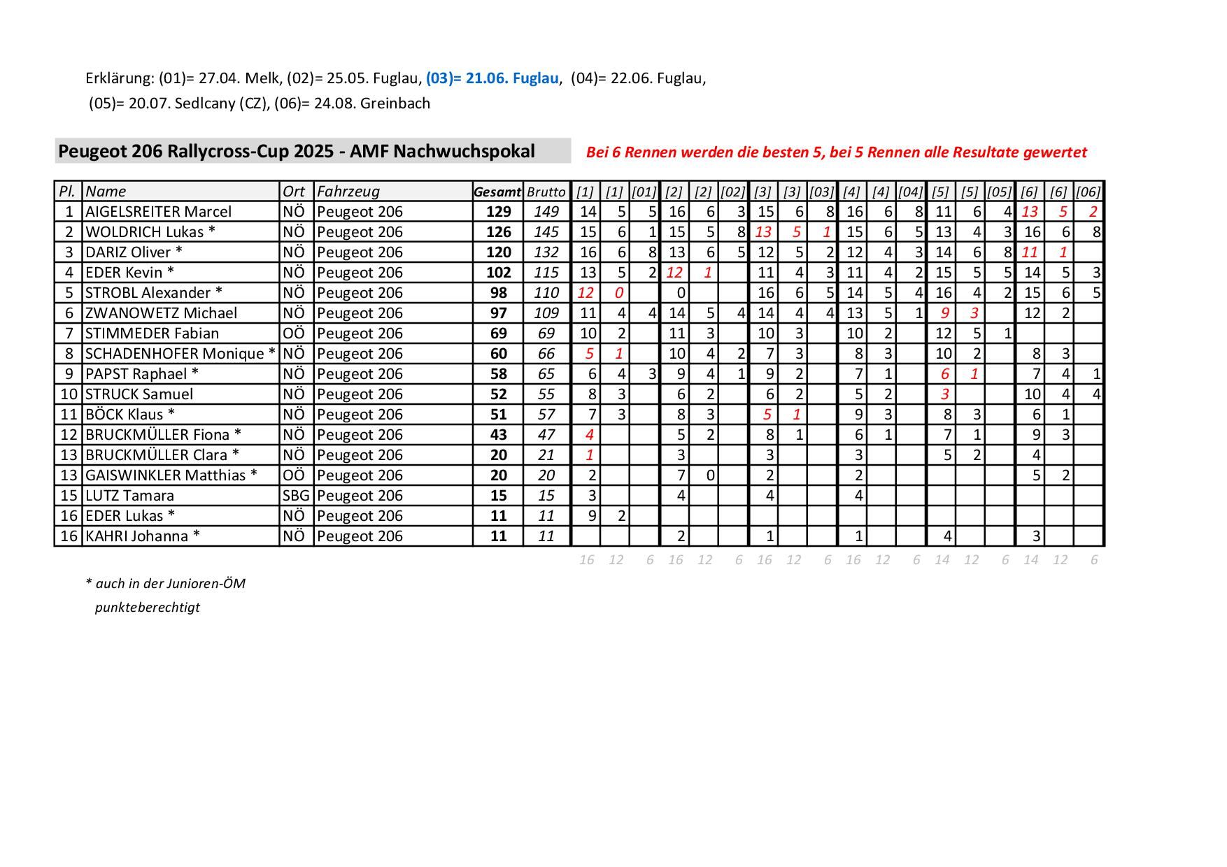 Endstand Saison 2025