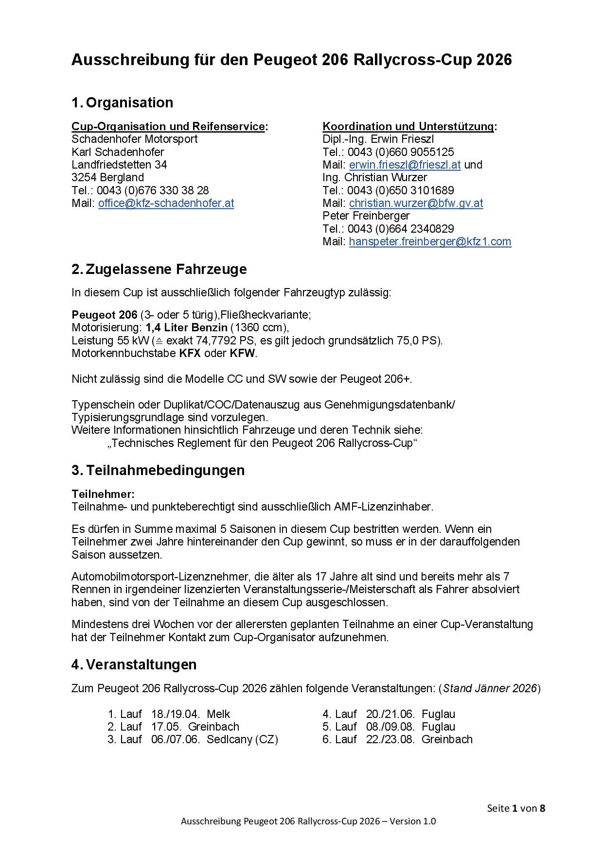 Ausschreibung und technisches Reglement für den Peugeot 206 Rallycross Cup 2026