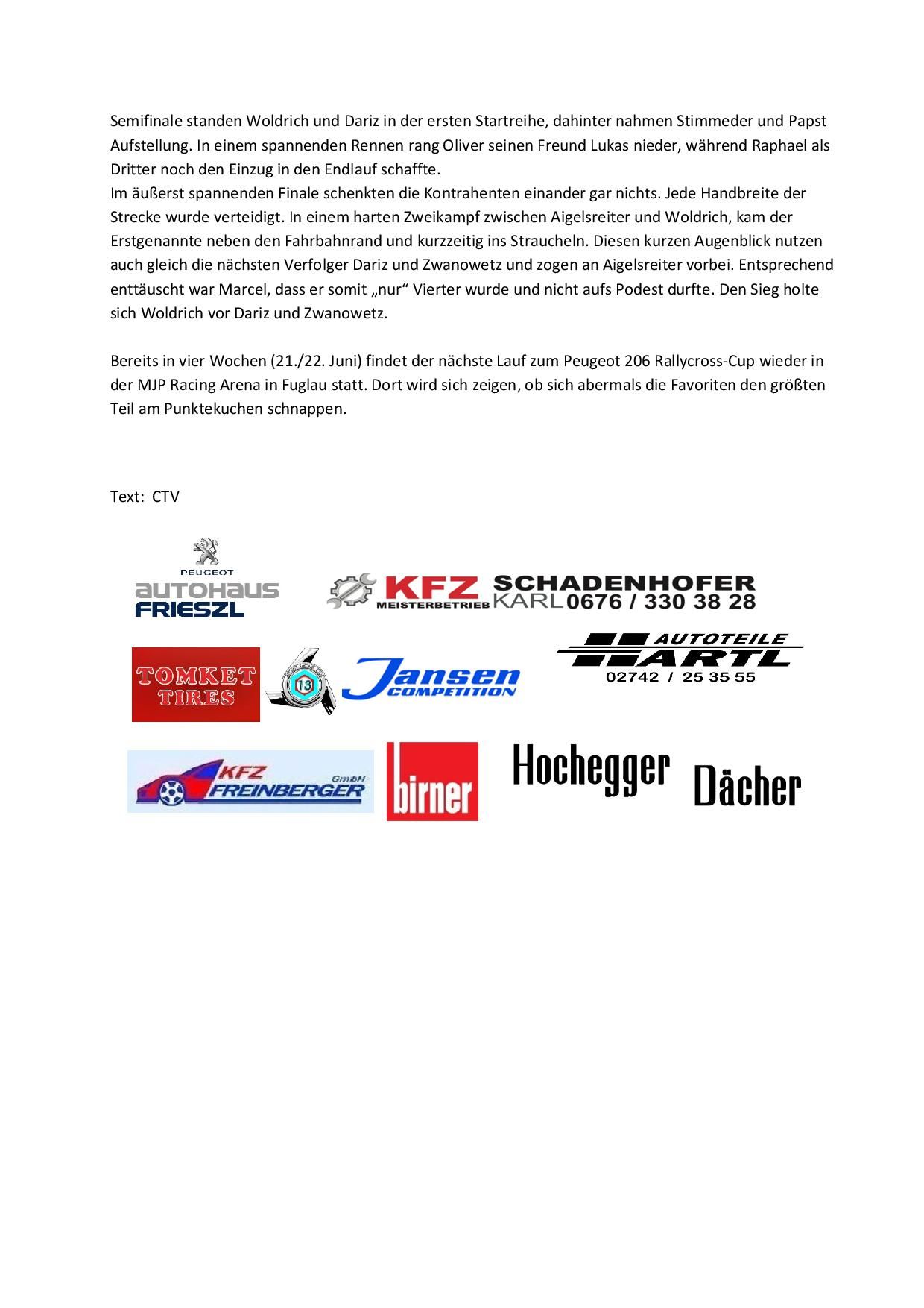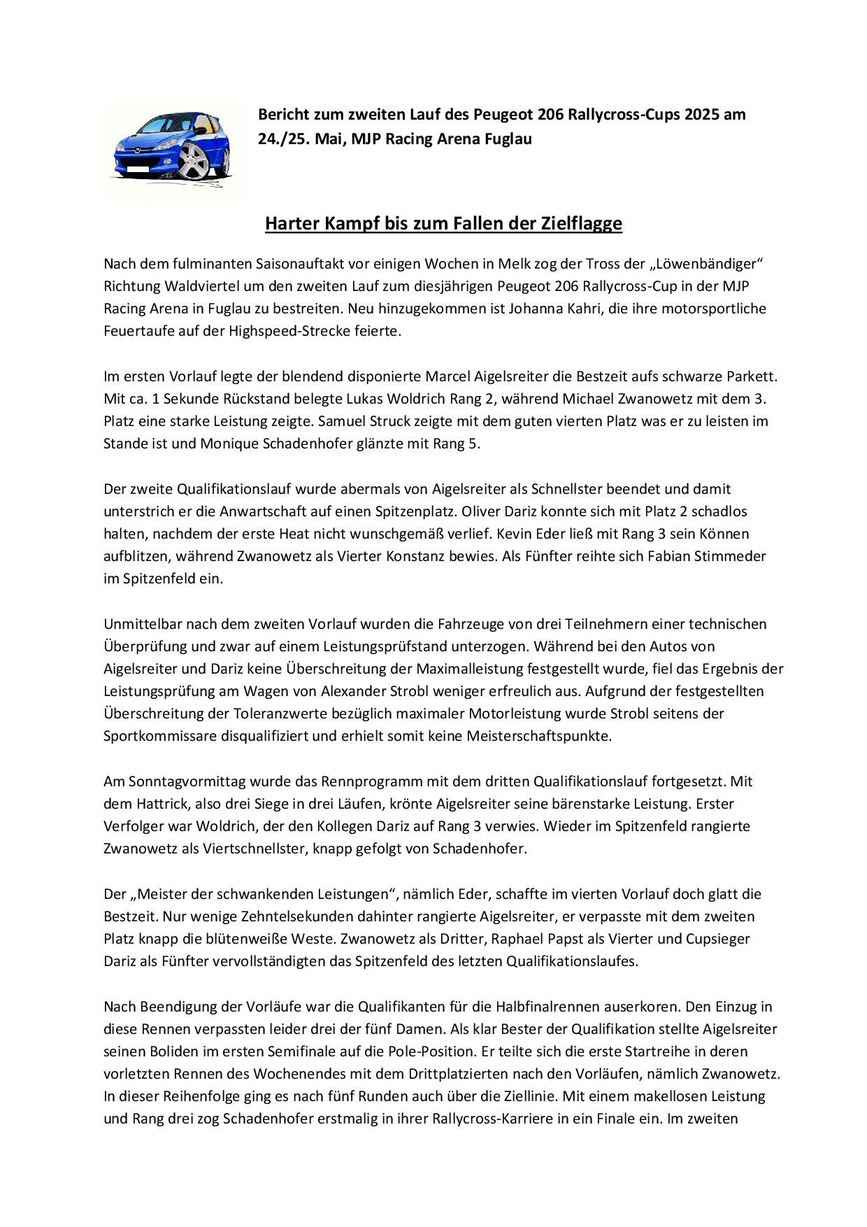 Bericht vom zweiten Rennen in der MJP Arena Fuglau zum Download